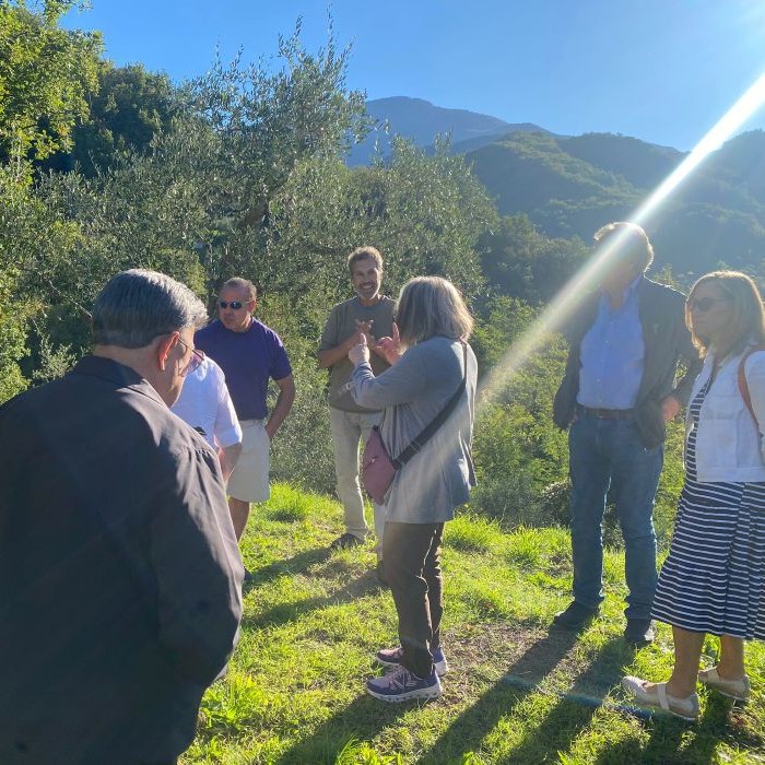 La giornata inizia nell’entroterra di Chiavari, a Isola di Borgonovo, dove incontreremo una cooperativa che sta portando avanti un lavoro prezioso: recuperare oliveti e noccioleti abbandonati, restituendo vita a un paesaggio fragile fatto di terrazzamenti e muretti a secco.