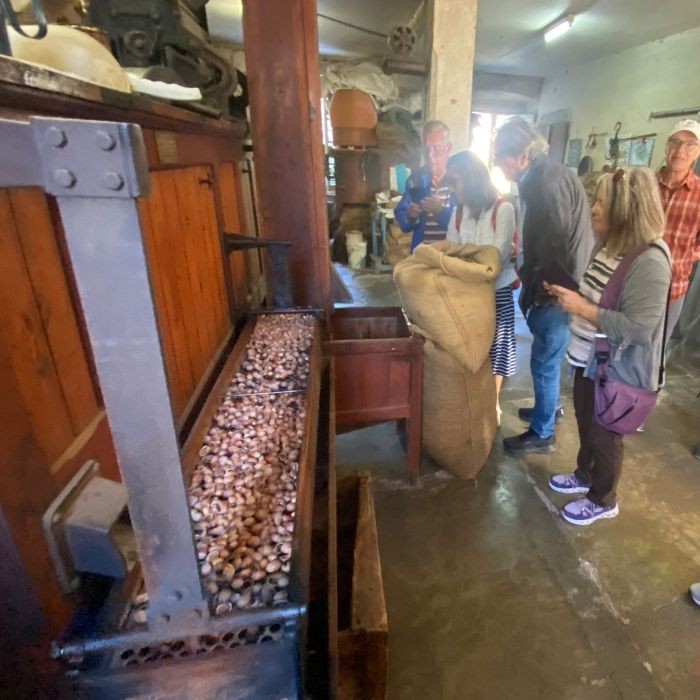 Visiteremo poi uno storico opificio ancora funzionante, con macchinari originali del dopoguerra. Qui vedremo da vicino le fasi di lavorazione delle nocciole, dalla sgusciatura ai processi tradizionali, in un affascinante confronto con le tecniche moderne.