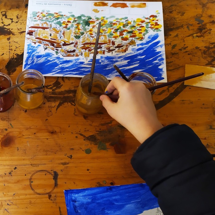 - La giornata si chiude con un momento creativo: visiteremo il Museo dell’Ocra e parteciperemo a un workshop di acquarello, utilizzando i pigmenti naturali del territorio. Un modo diverso e molto personale per portarsi a casa un ricordo della Provenza.